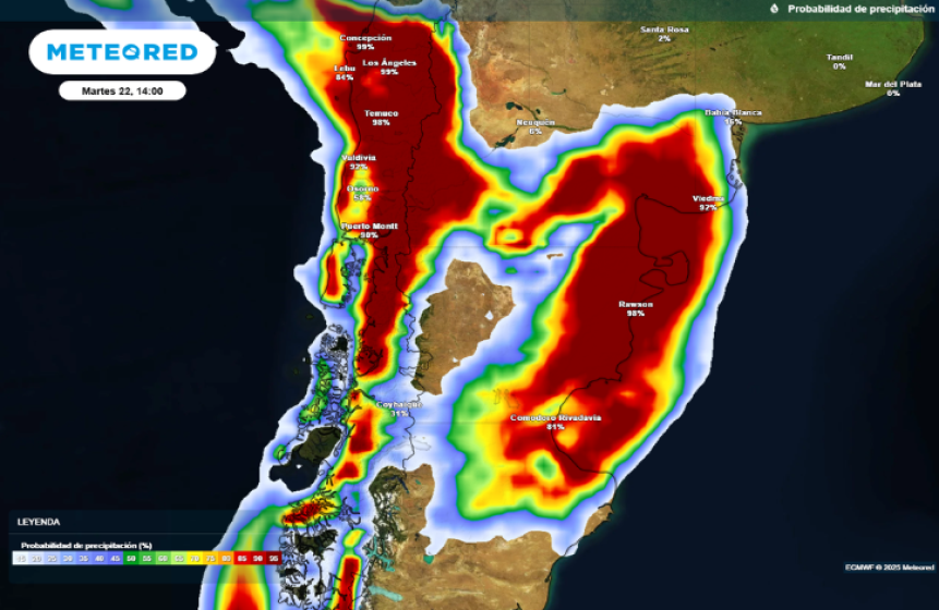 Alerta naranja por lluvias y vientos intensos en la región cordillerana de la Patagonia
